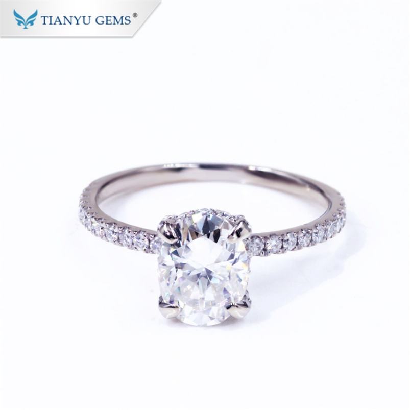 Tianyu personnalisé 14k/18K or blanc caché halo anneau 6.5*8.5mm ovale brillant coupe Moissanite or mariage dame anneau