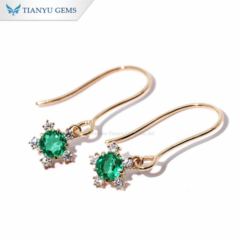 Tianyu Gems 4.0mm Rond Émeraude et Moissanite Diamants 10k 14k 18k Fleur Conception Charme Boucles D'oreilles pour les Femmes Anniversaire