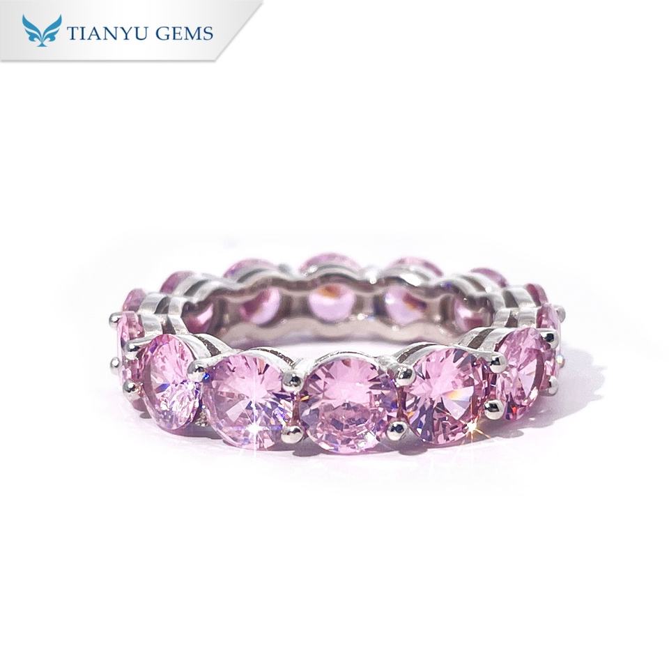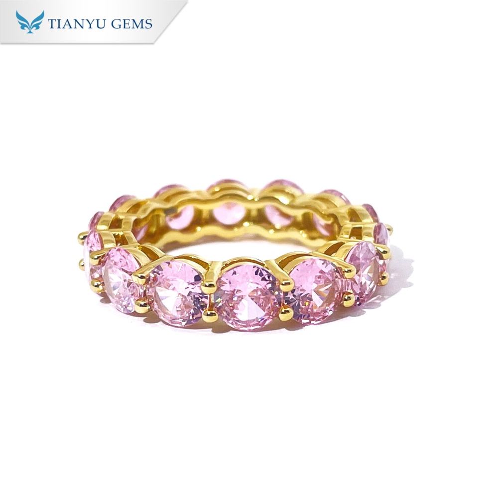 Bague en cuivre plaqué or chic Tianyu avec zircon rond rose et blanc, bande d'éternité, bijoux tendance pour femmes