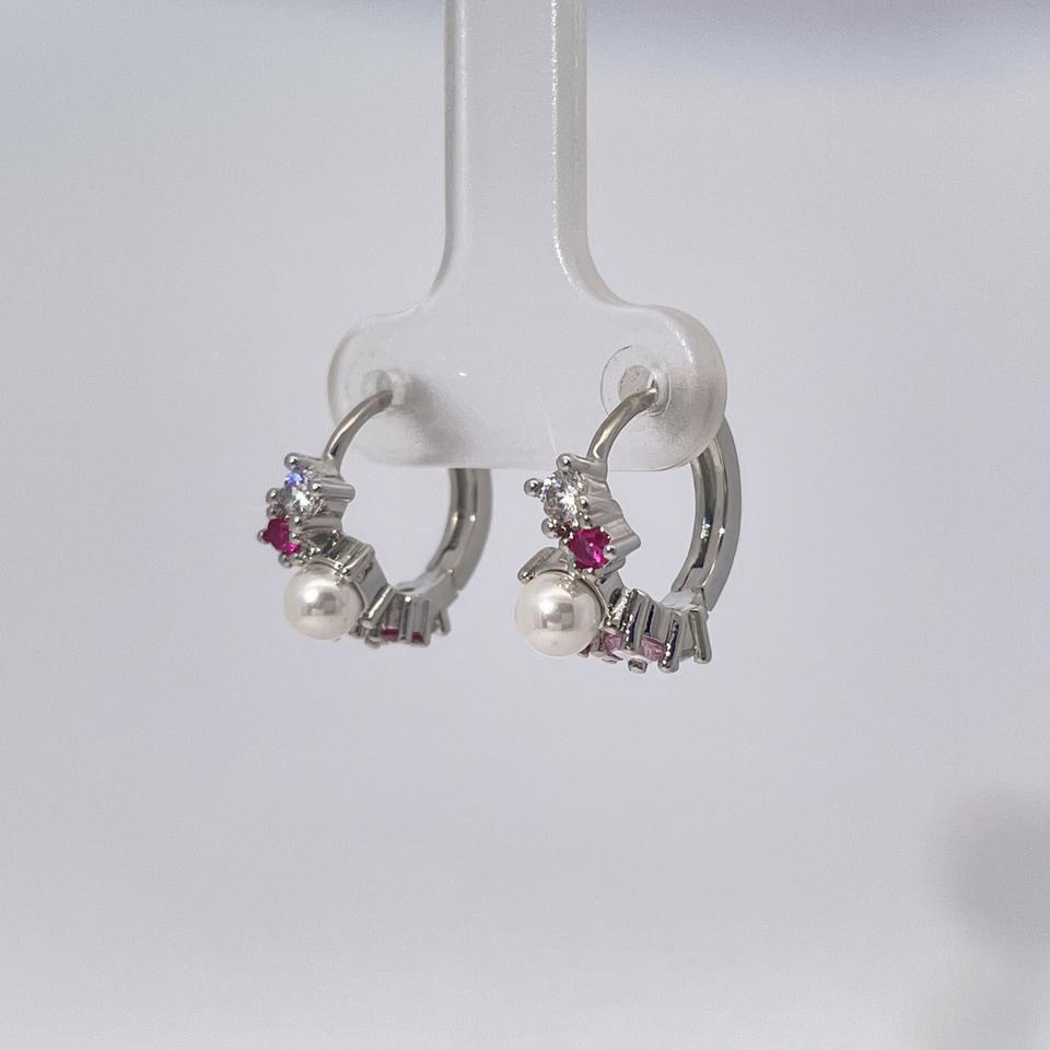 Boucles d'oreilles créoles classiques Tianyu Gems pour femmes, en laiton plaqué or, avec perles en zircon cubique blanc et rouge.