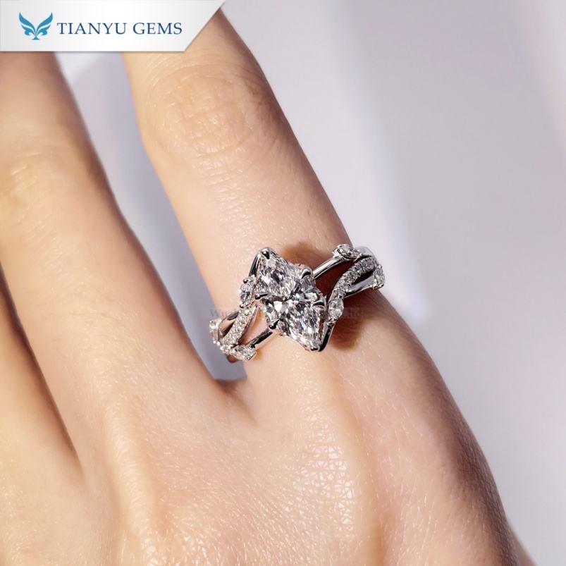 Tianyu Gems personnalisé forêt esprit pur bague en or blanc Marquise coupe laboratoire diamant pour les femmes livraison gratuite Design bague de mode
