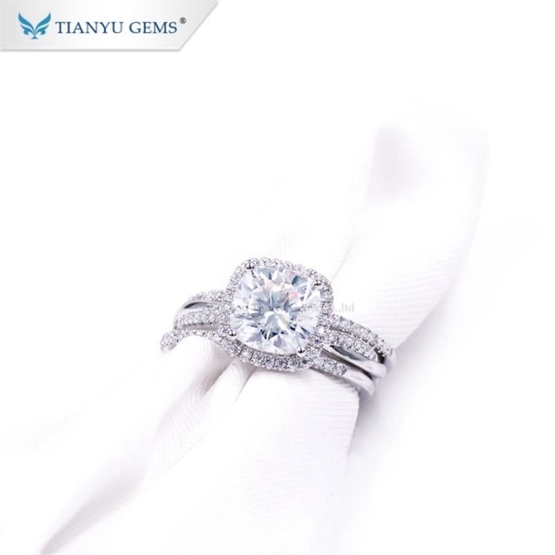 Tianyu Gems Fancy Design Bague de mariage en or blanc avec le meilleur réglage de gemmes de Moissanite de coupe de coussin