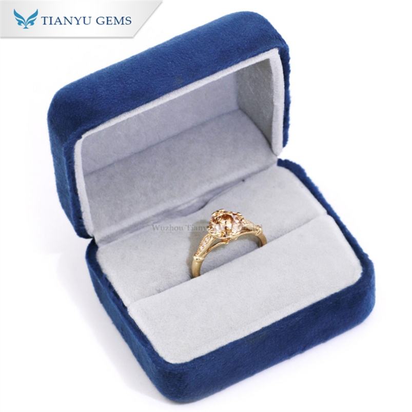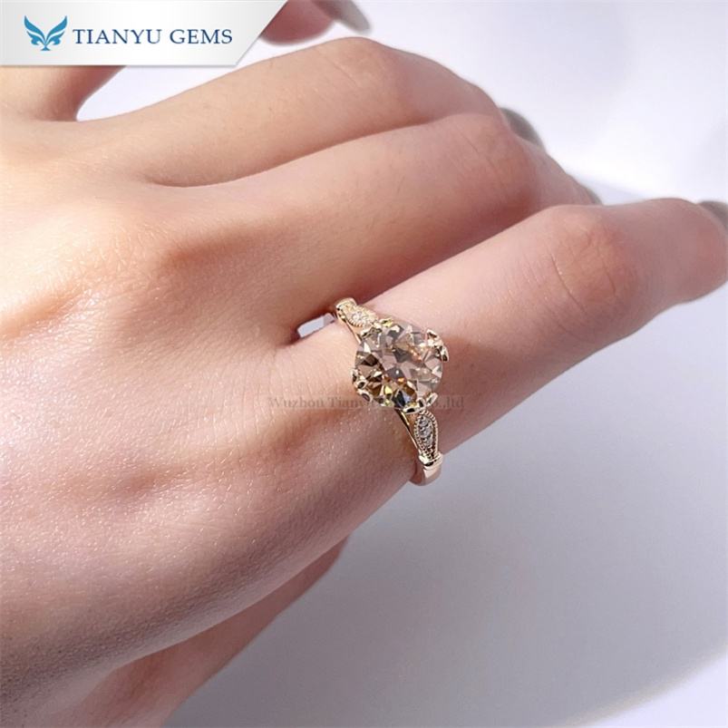 Tianyu Gems Fine Jewelry Personnalisé 14k/18k Or Jaune OMC Cut champagne Moissanites Bagues de Fiançailles pour Femmes pour Femme