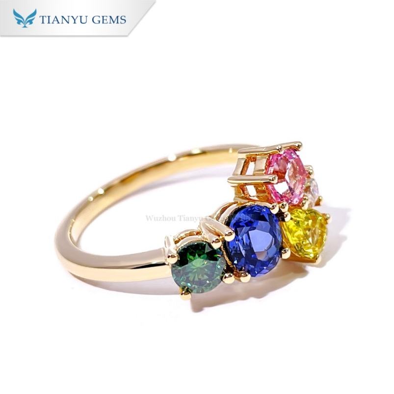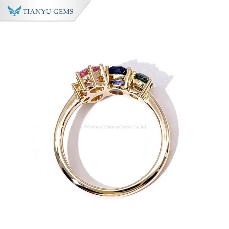 Tianyu Gems Lab Saphir Anneaux Rond Poire Hexagone Forme Ovale Couleur Pierres Précieuses Ring18k 14k Or Jaune Bagues de Fiançailles pour Femmes