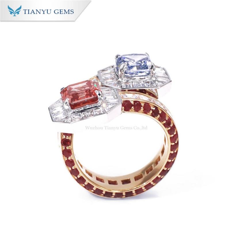 Tianyu Gems luxe fantaisie couleur laboratoire cultivé diamant HPHT CVD rubis anneaux de mariage or massif laboratoire créé diamants bague de fiançailles