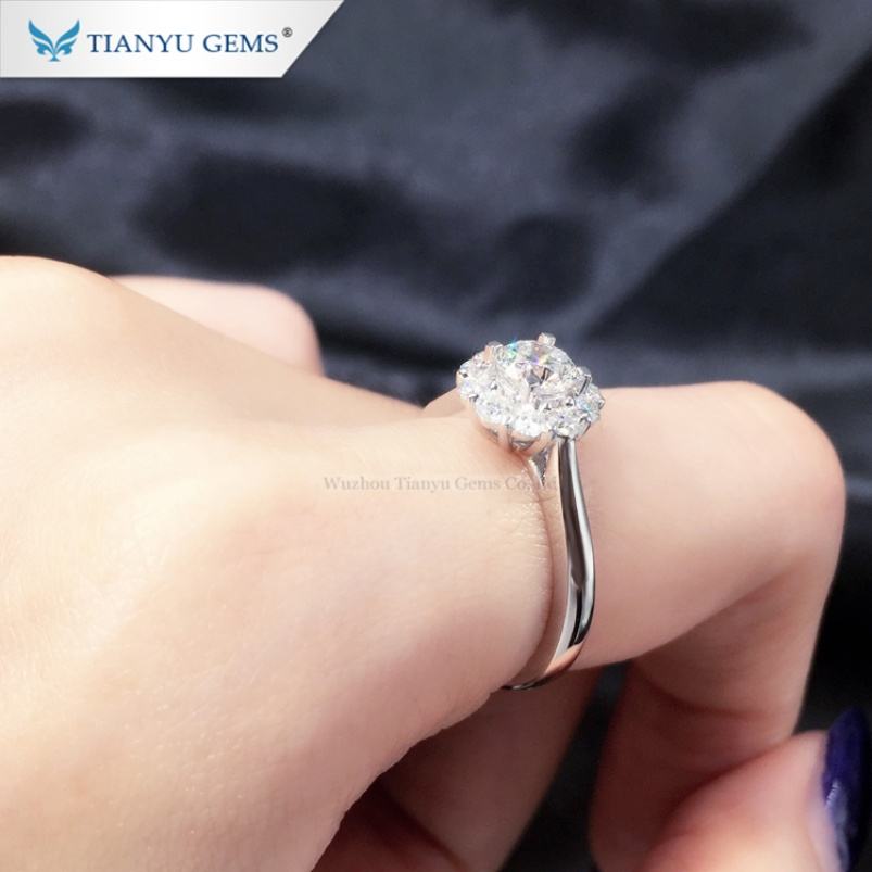 Tianyu Gems Bague de fiançailles en or blanc 18 carats avec diamant Moissanite personnalisé en forme de fleur taillée ronde