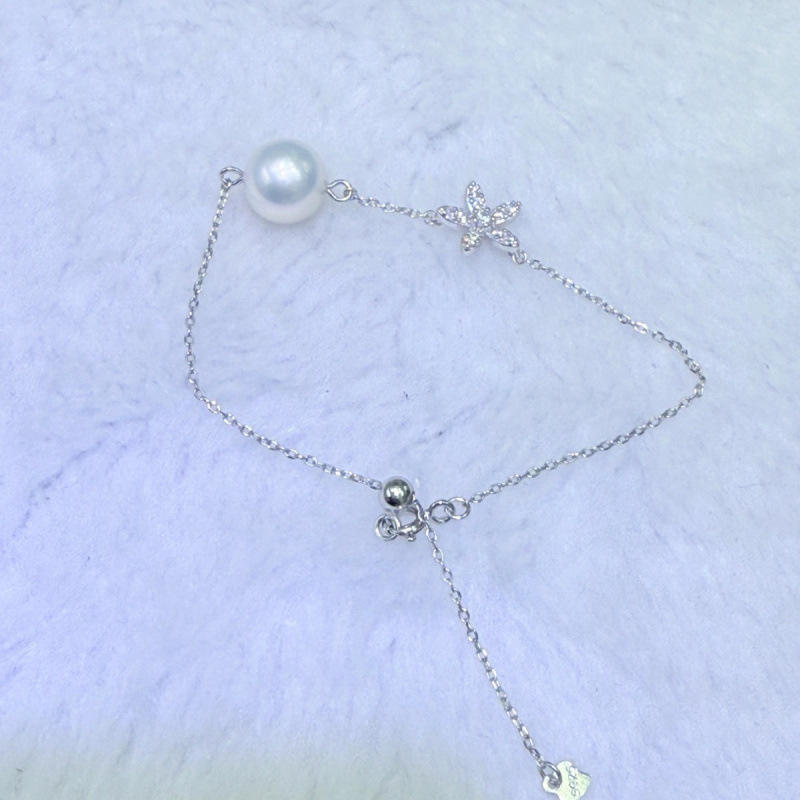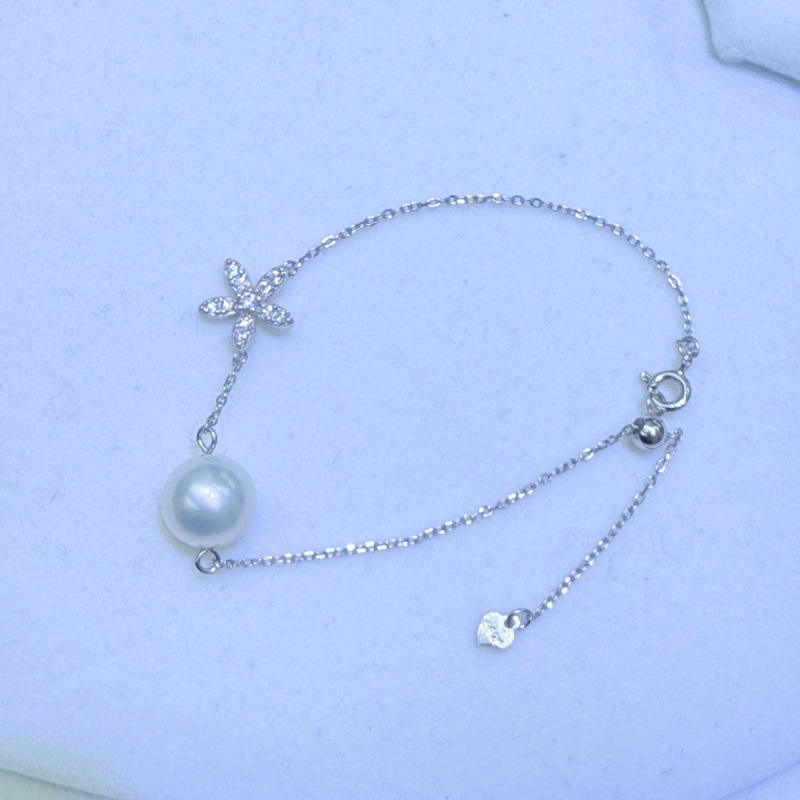Tianzhuji Natural 10-11mm Freshwater Pearl Bracelet Almost Flawless Pure Silver Small Flower Design White Pearl Pendant Charm
