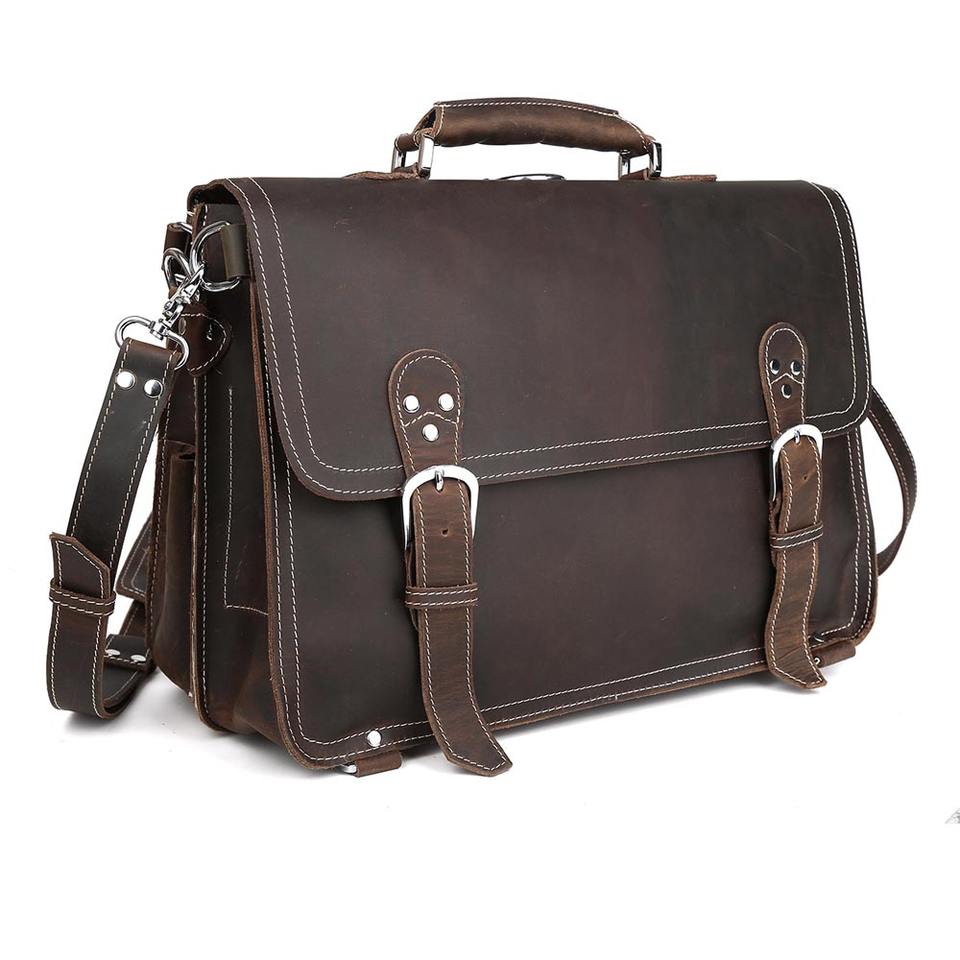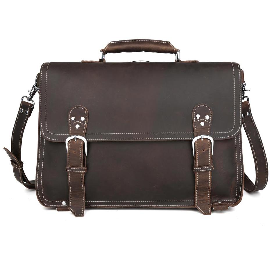 Mallette en cuir de vache rétro pour hommes, sac messager Convertible multifonction 15.6 pouces, offre spéciale