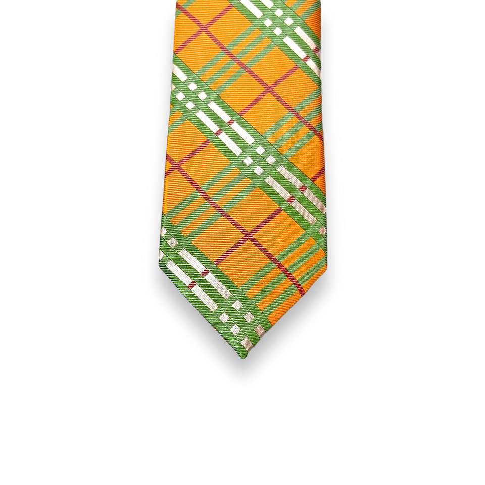 Cravate Benon Cravate polyester à carreaux orange et vert