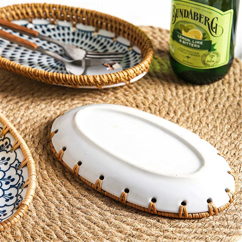 TienPhong – sous-verre en rotin artisanal, sous-verre rond rétro tissé à la main avec céramique fabriqué au Vietnam