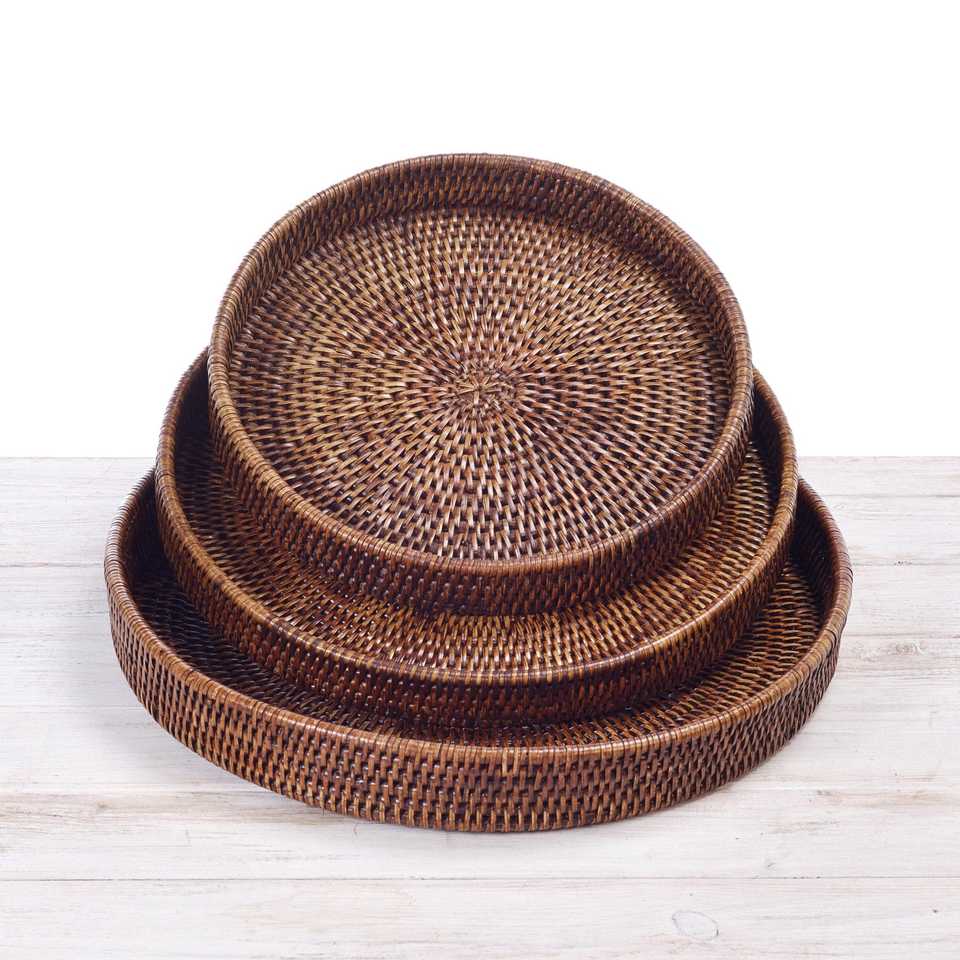 TienPhong Vente en gros Grand plateau de service rond en rotin-Plateau décoratif tissé à la main avec poignées pour la cuisine et la maison