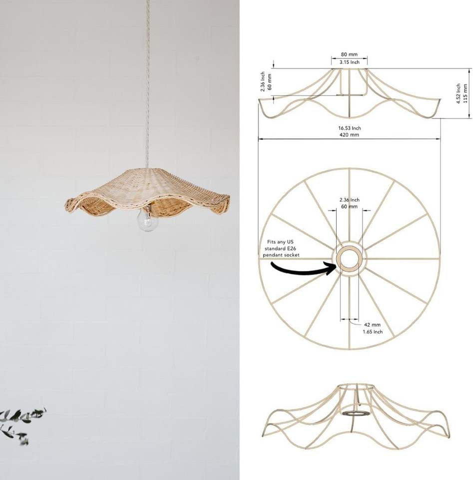 Product name:Hand Woven Wave Rattan Lamp Shade