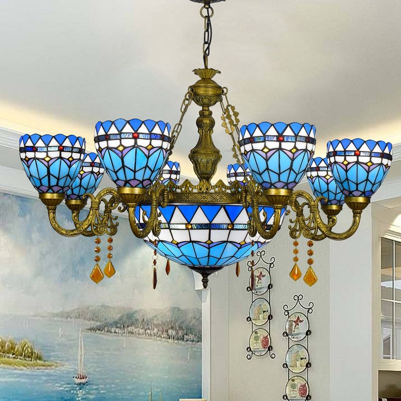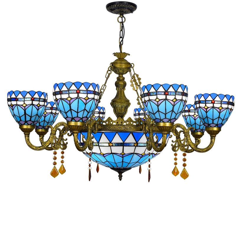 Tiffany verre lumière rétro lustres 8 lumières nouvel hôtel suspension lampe décoration salle à manger villa luxe grande lampe suspendue