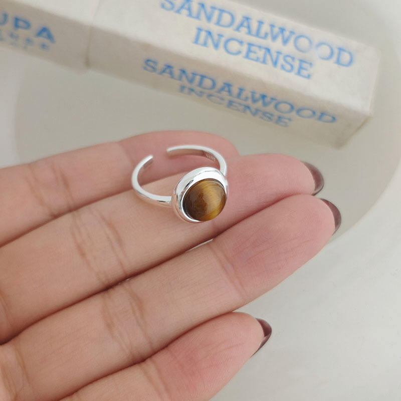 Bague en argent pur S925 avec œil de tigre, œil de chat, ambre mélaire, plaqué or 18 carats, incrustation unique et cool, pierre naturelle, style bureau