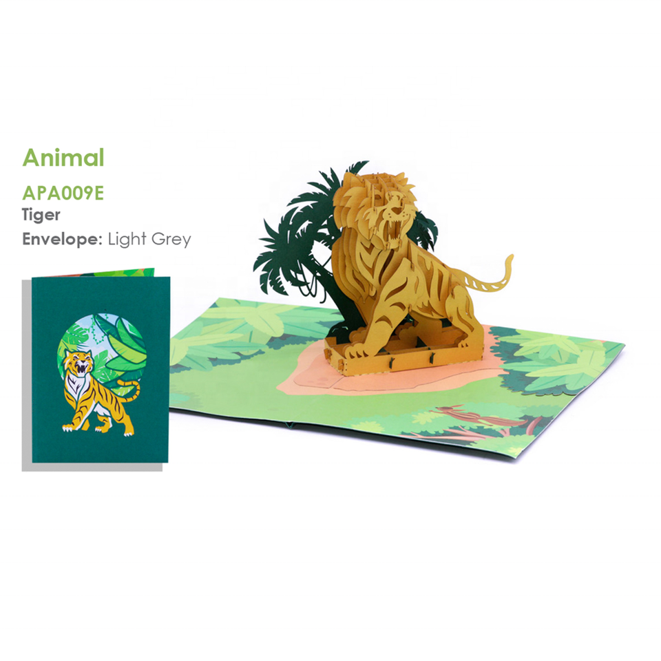 Carte pop-up 3D Tigre dans la jungle, cartes de vœux faites à la main avec enveloppe, design animalier, cartes de vœux 3D sur le thème des animaux, artisanat animalier