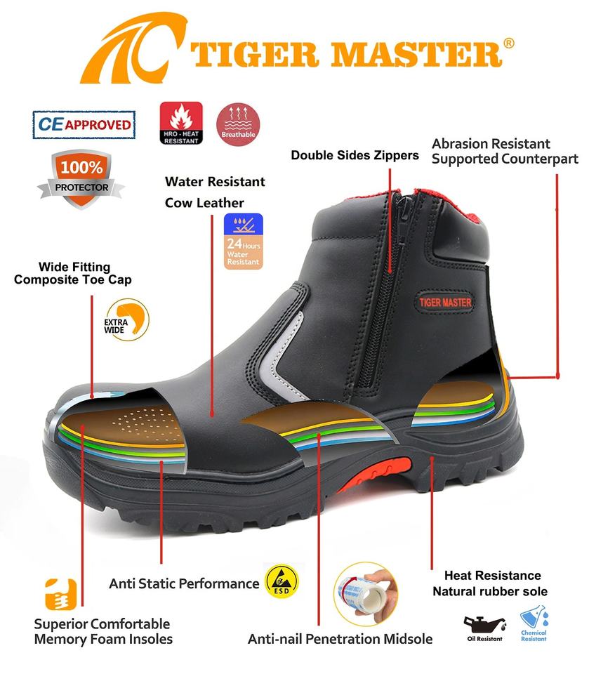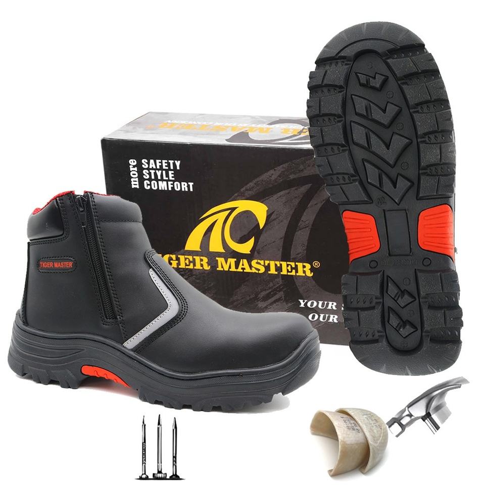 Tigre maître HRO huile résistance à l'acide semelle en caoutchouc Composite orteil Anti crevaison industrie pétrolière hommes chaussures de sécurité sans dentelle