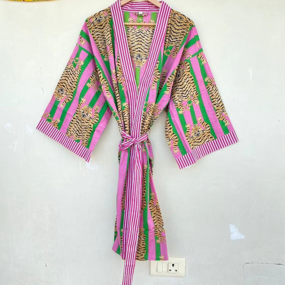 Fabric:Block Print Robe Cotton Kimono