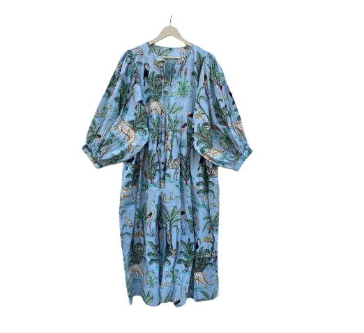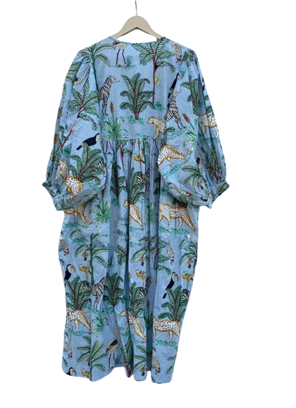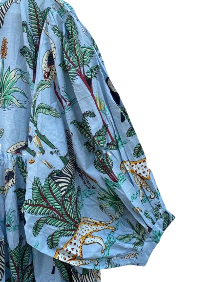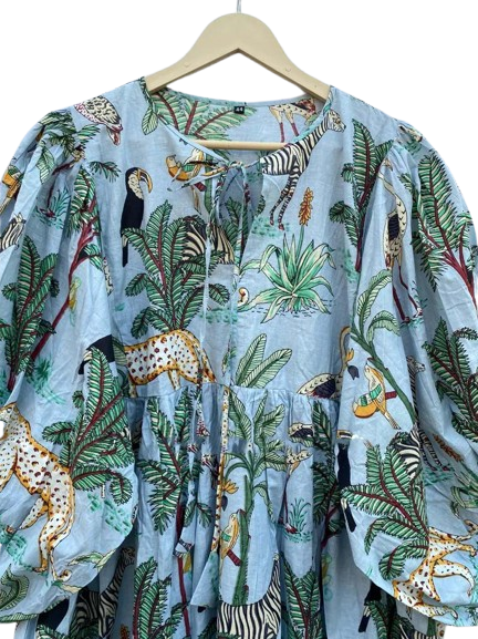 Tunique courte pour femme en coton bio imprimé tigre, faite à la main, douce, pour pique-nique estival