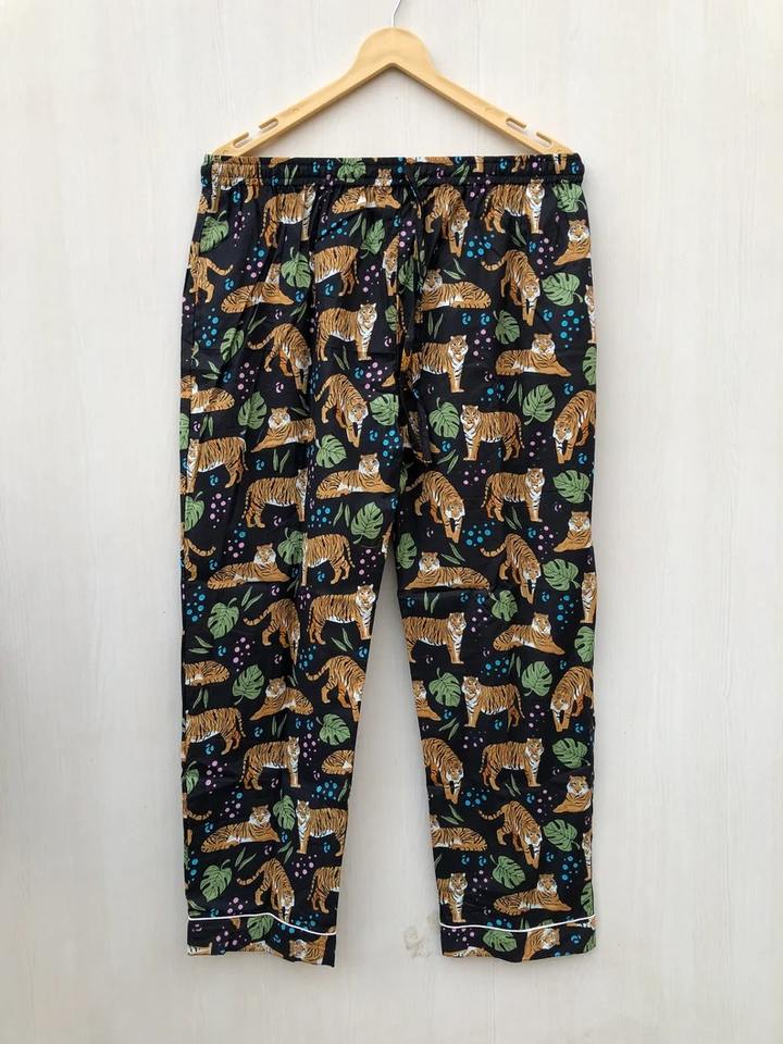 Ensemble de pyjamas en pur coton imprimé tigre Costume de nuit doux pour elle-Robe à imprimé animal en coton indien pour vêtements de nuit ou cadeau
