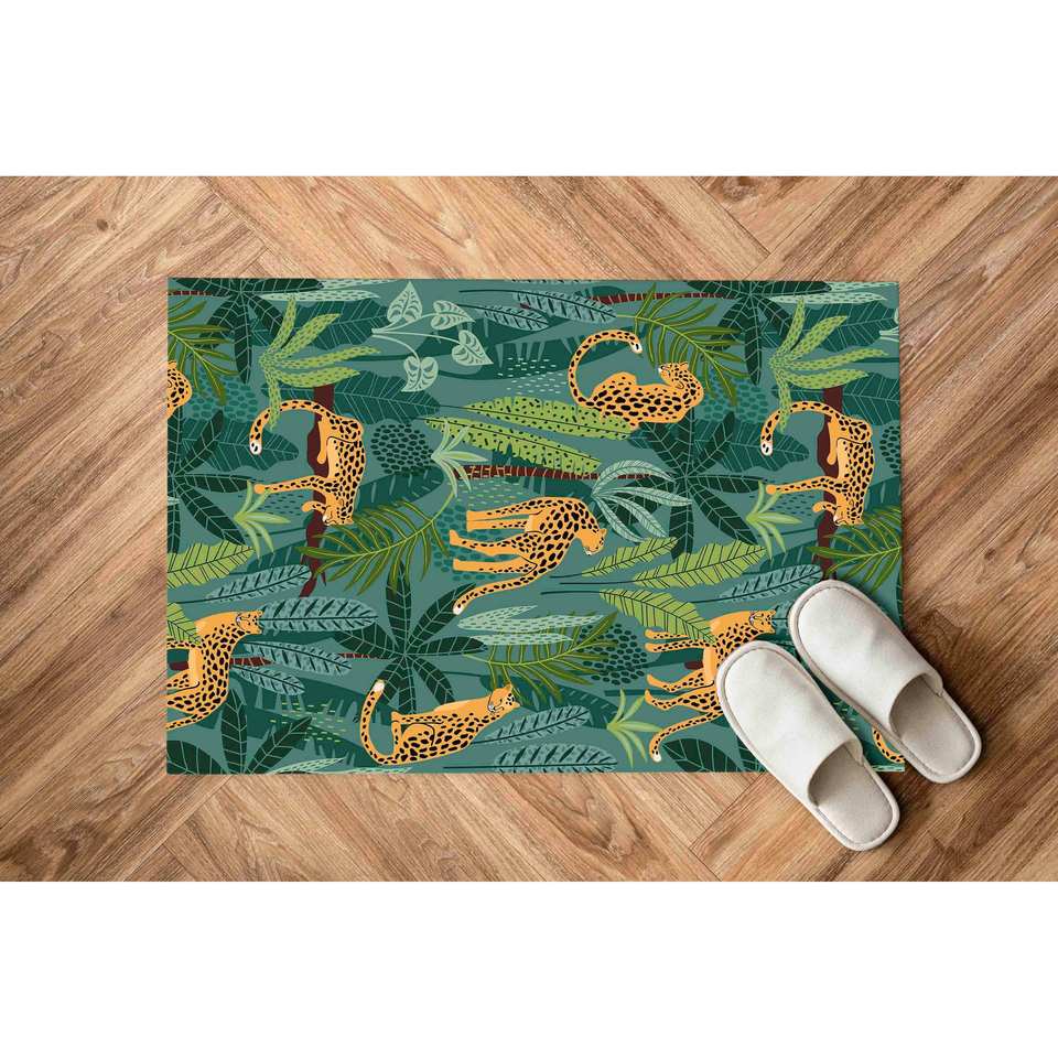 Tapis à imprimé tigre : Tapis bohème vert antidérapant, tapis en chenille