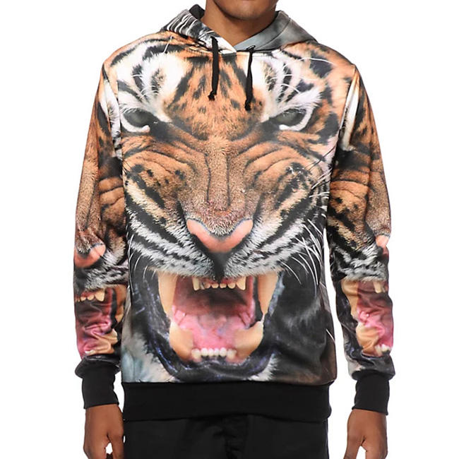 Pull à capuche en polaire avec image imprimée de tigre, pull confortable de haute qualité, taille et couleur personnalisées