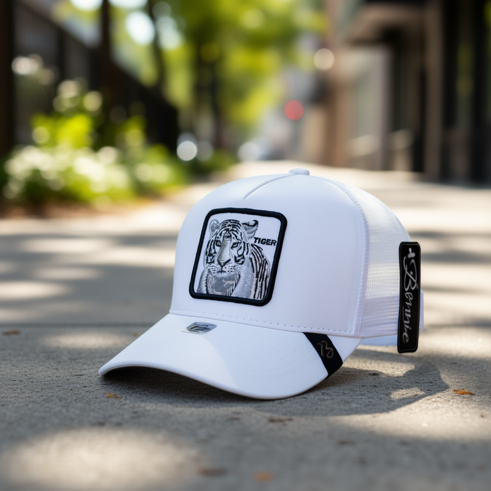 Casquette Trucker Bernie Tiger 6 Panneaux Réglable en Maille Unisexe pour Tenue Décontractée avec Patch Brodé à la Main sur le Devant