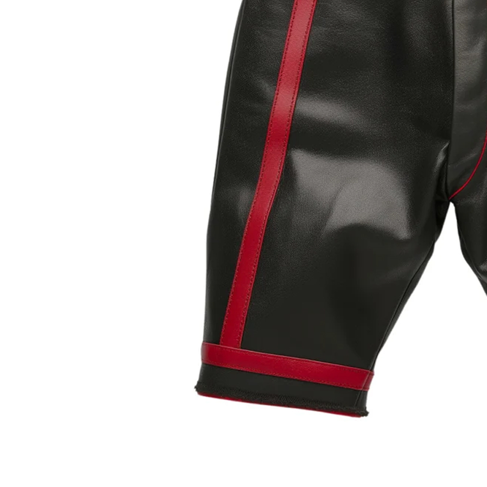 Shorts moulants en cuir rouge longueur genou avec double fermeture éclair, taille mi-haute élastique, motif à pois, perles, effet wetlook latex, pour femmes et hommes