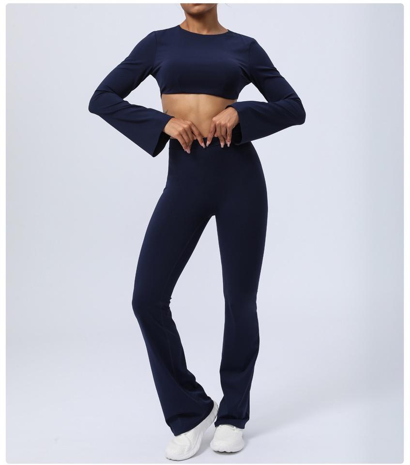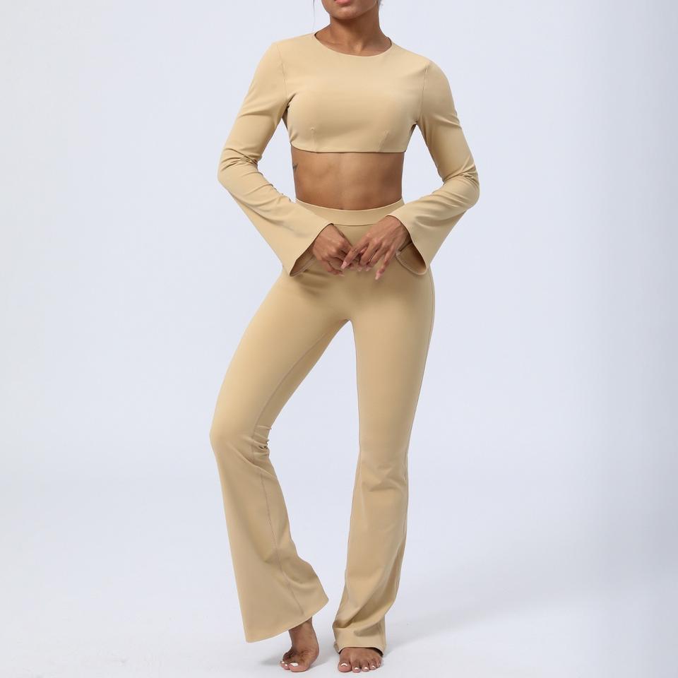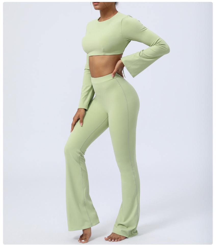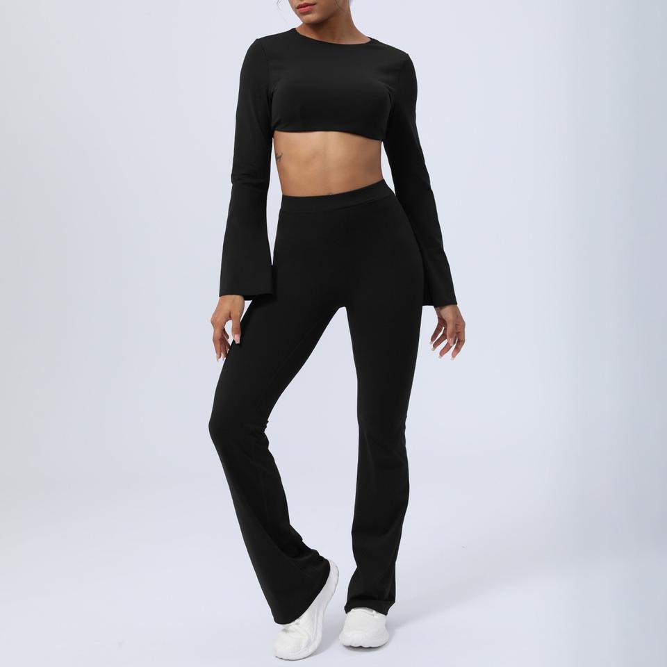 Ensemble de yoga moulant effet seconde peau, séchage rapide, tenue de sport dos nu, ensemble deux pièces avec pantalon évasé