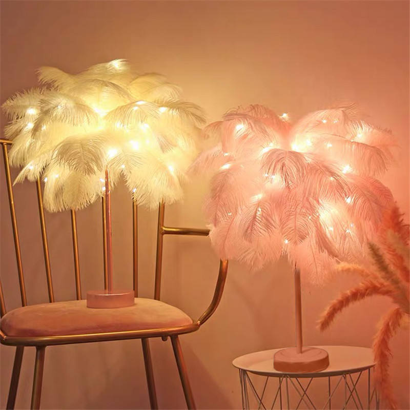 Lampe de bureau LED créative en plumes, Style Tik Tok, ambiance romantique, luminaire décoratif d'intérieur, idéal pour un parterre de nuit