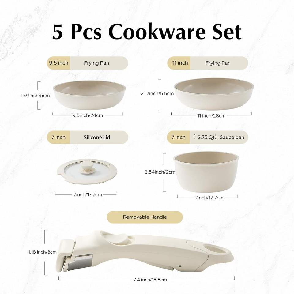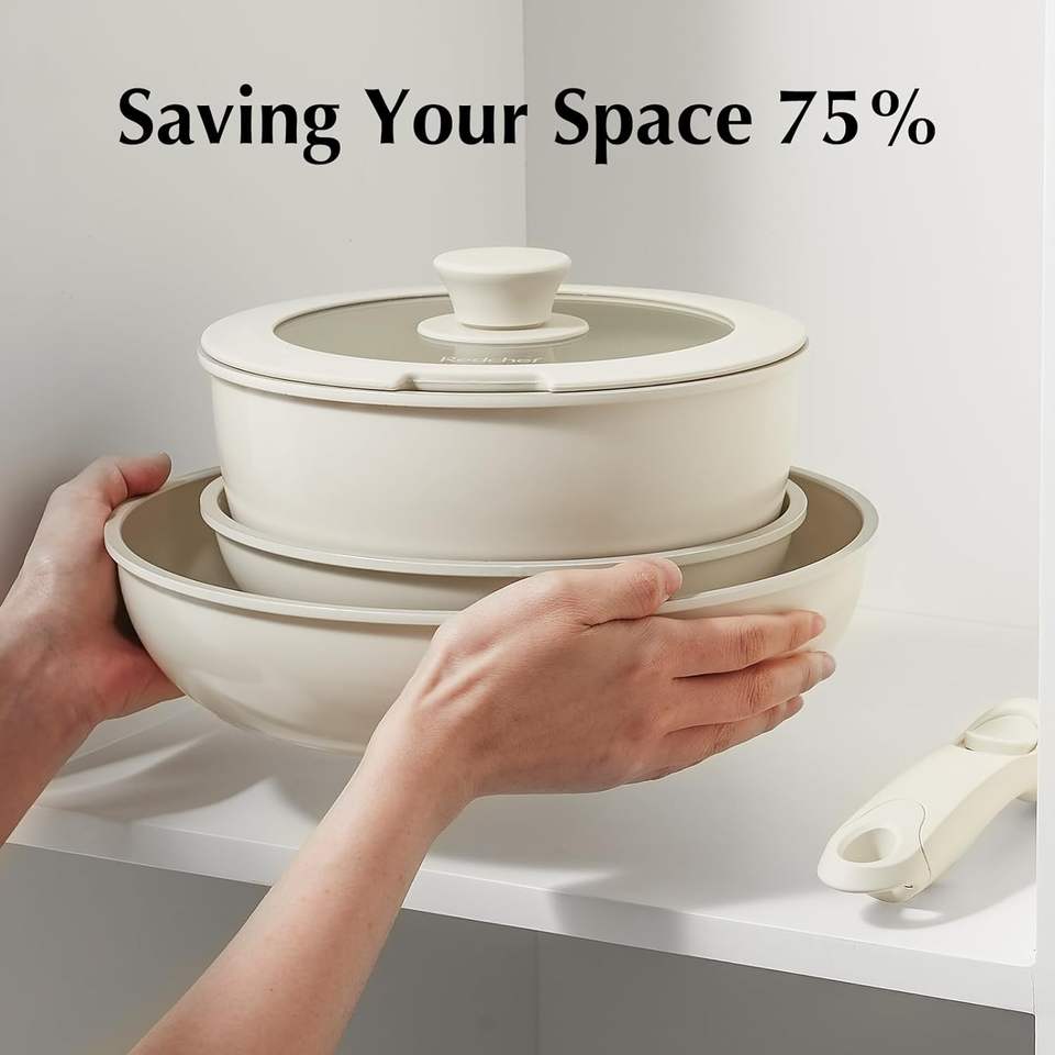 Batterie de cuisine antiadhésive en céramique chaude TikTok avec poignée amovible, casseroles et poêles non toxiques et écologiques