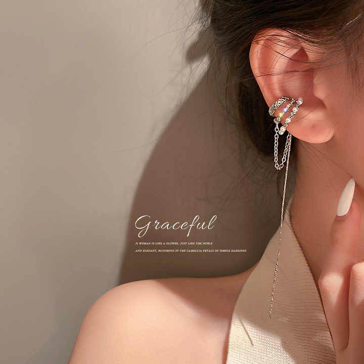 TikTok vente chaude perle chaîne oreille pince boucles d'oreilles Non percé oreille manchettes bijoux boucles d'oreilles pour les femmes