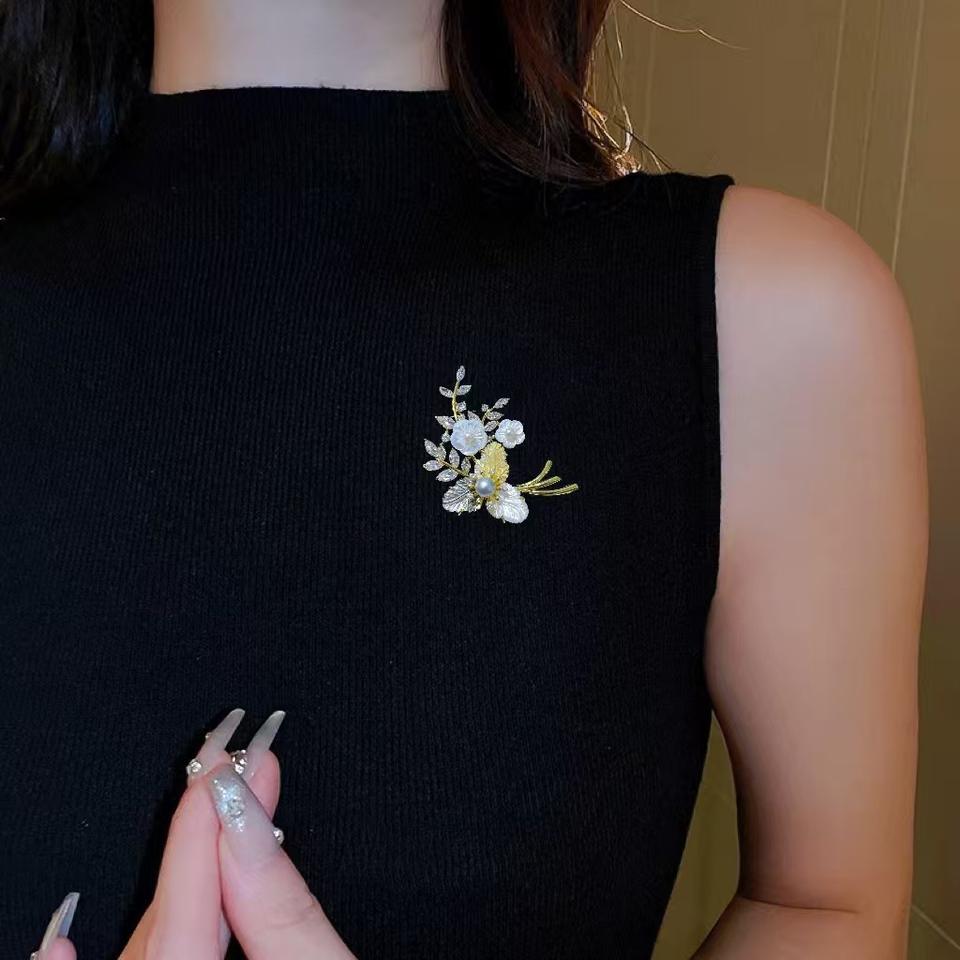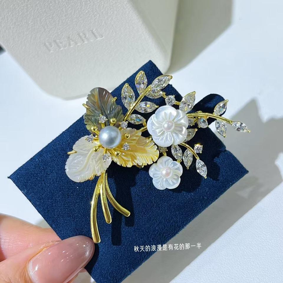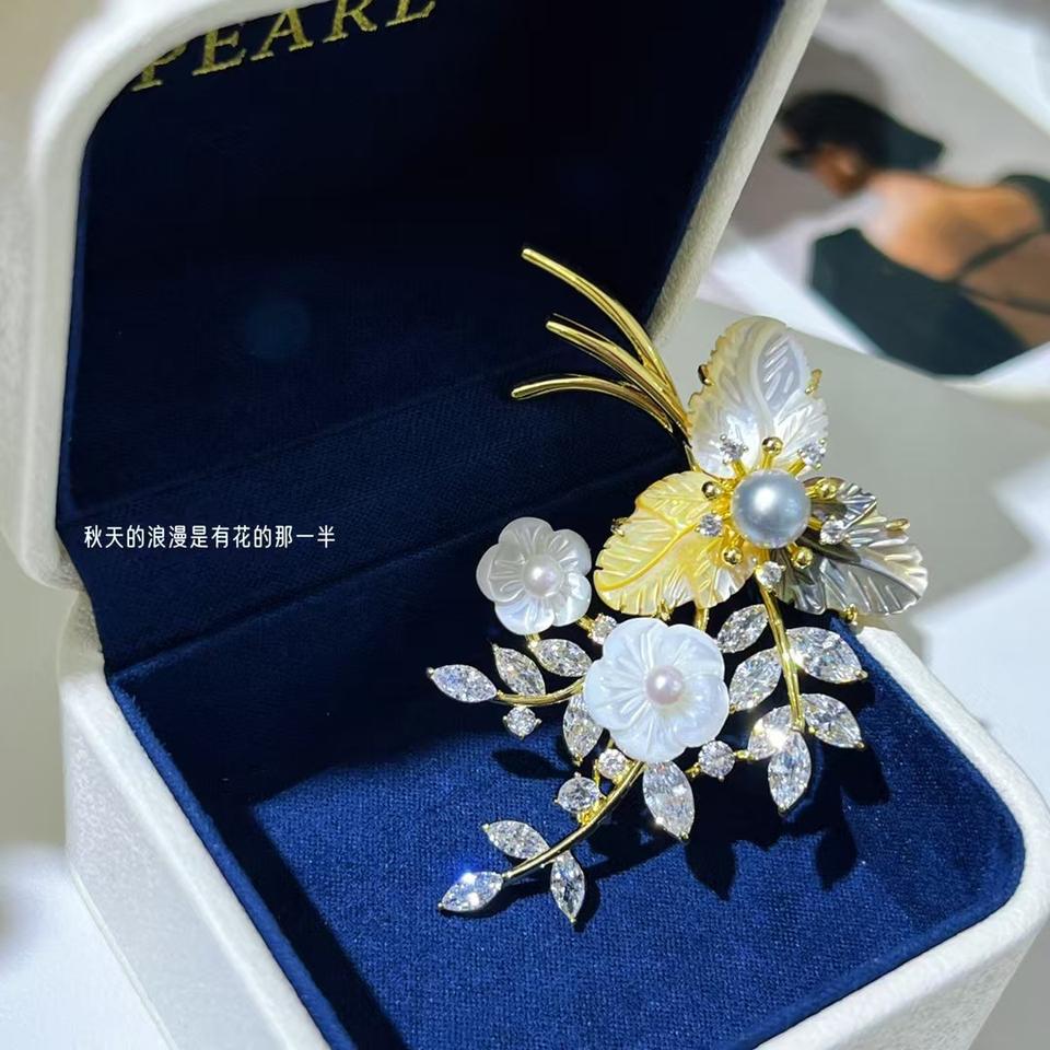 TikTok Kwai Recommended Essential Sculpture Shell Inlaid Seawater Pearl Brooch Pin Chic Sweater Coat Accessory