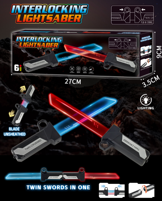 Sabre laser télescopique à double tranchant populaire sur TikTok, mini épée de samouraï en plastique, jouet d'arme de jeu de rôle, sabre laser haut de gamme