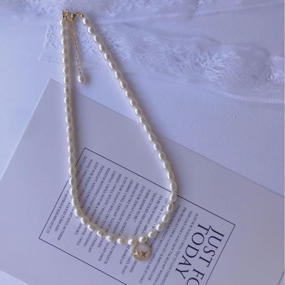 Collier pendentif en or 18 carats de style TikTok avec zircon, plaque étoile œil de chat, perle d'eau douce et chaîne de collier de haut niveau