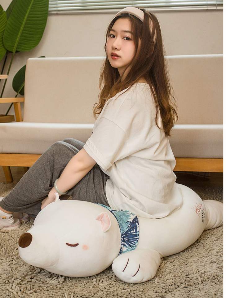 Tiktok Vente Chaude Grand Ours Blanc Pondéré Poupée Mignon Ours En Peluche Jouet Ours Couché Poupée pour Garçon Fille Lit Oreiller De Couchage