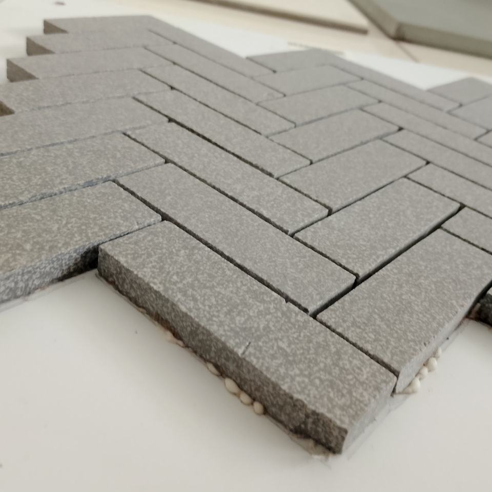 Tile Royale 23X73mm Graphite Chevrons Porcelaine Mosaïque Extérieur pour Salle À Manger murs Hôtels Restaurants Toilettes murs