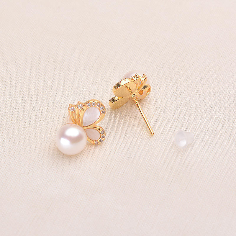 Tilian 7-8mm Natural Freshwater Pearl Earrings Round Flawless Butterfly Shaped Mantou Elegant Freshwater Pearl Jewelry