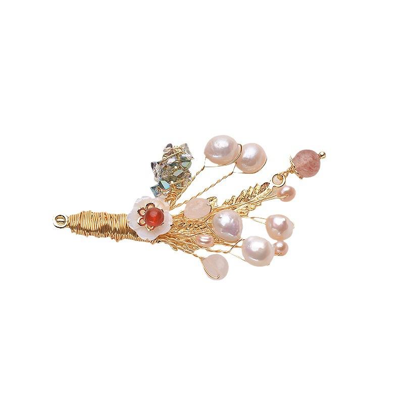 Tilian Original Design Handmade 14K Gold Brooch with Freshwater Pearl Number Pattern Pins with Zircon Chest Flower