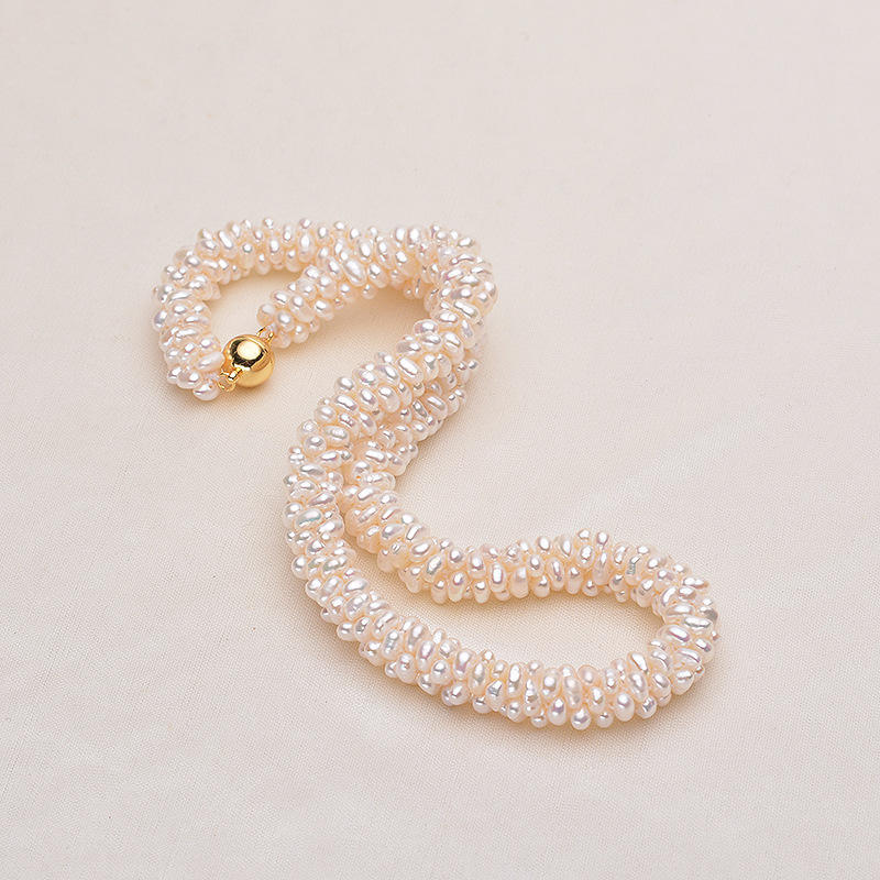 Tilian Pearl Natural Freshwater Pearl Necklace Bracelet Combo Small Baroque Weaving with Magnetic Buckle Alien Style