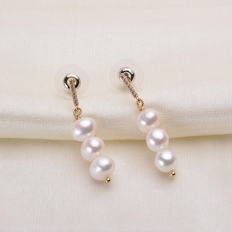 Tilian Pearl's Near Flawless 7-8mm Freshwater Pearl Earrings 14K Gold Plated European American Fashion Style