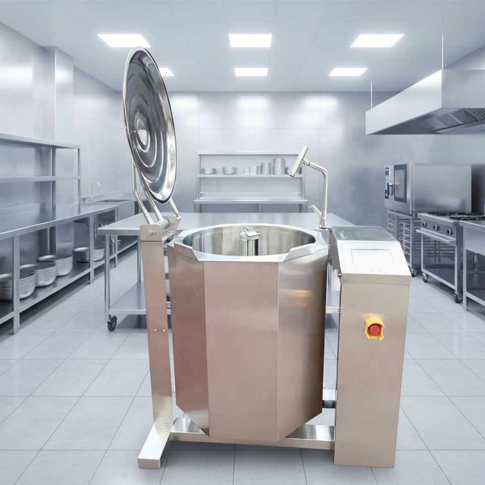 Machines Fonction:Chauffage direct électromagnétique ultra-rapide, Cuiseur à induction basculant commercial / Braisière à agitation | Chauffage direct rapide, mélangeur et minuterie intégrés, pour la cuisson par lots dans le secteur de la restauration.