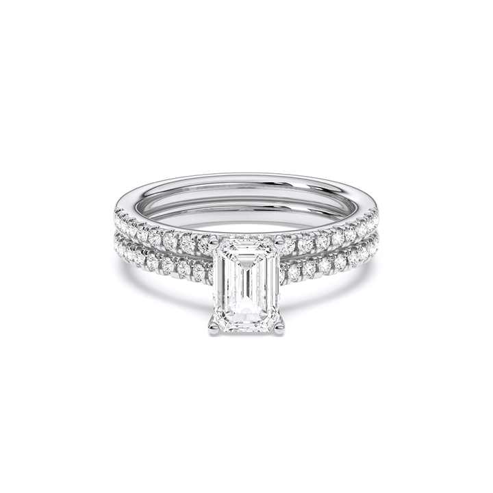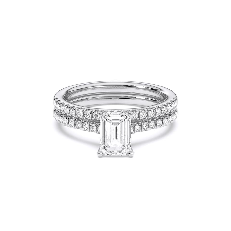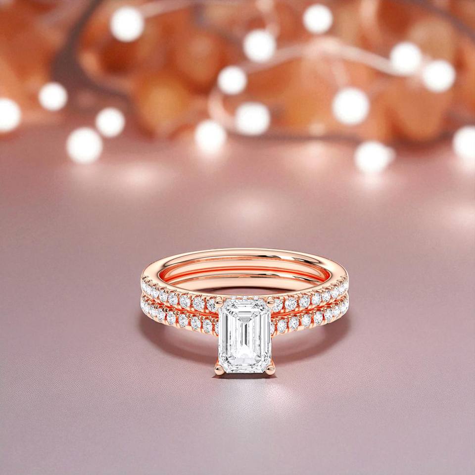 Timeless 1.50 Ct F-G/VS Lab Grown Bague de fiançailles en émeraude et diamant taille ronde avec bande en argent sterling 925