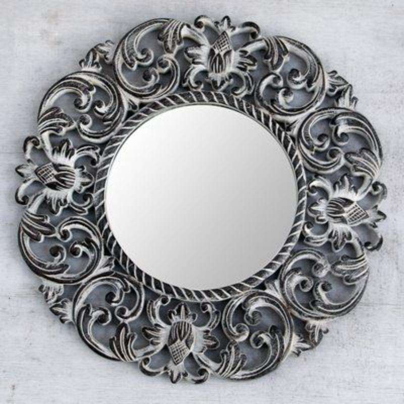 Cadre de miroir en bois au design antique intemporel pour rehausser les espaces de salon d'inspiration traditionnelle et vintage
