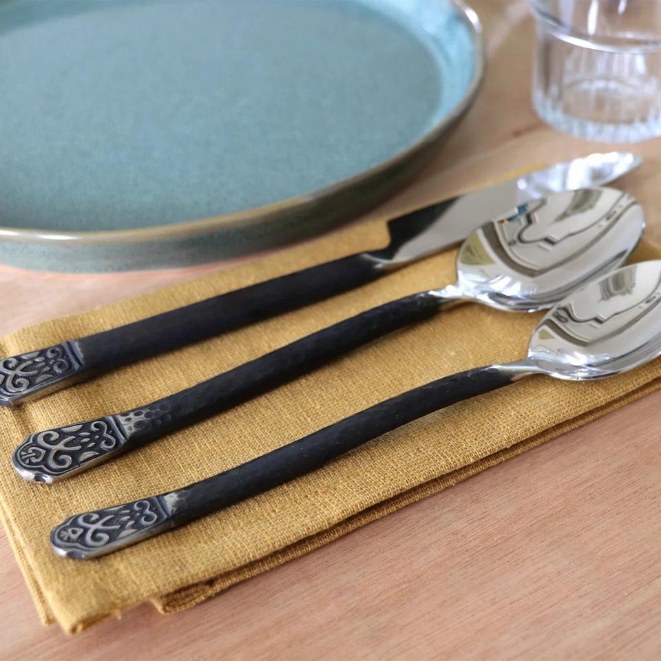 Conception intemporelle poignée en métal noir ensemble de couverts en acier inoxydable couverts pour Table à manger maison cuisine Restaurant utilisation de l'Inde