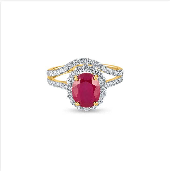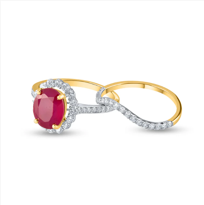 Bague Halo Diamant Rubis Ovale Intemporel En Or Jaune Pour Des Fiançailles Et Des Moments Spéciaux Avec Un Artisanat Fin De L'Inde