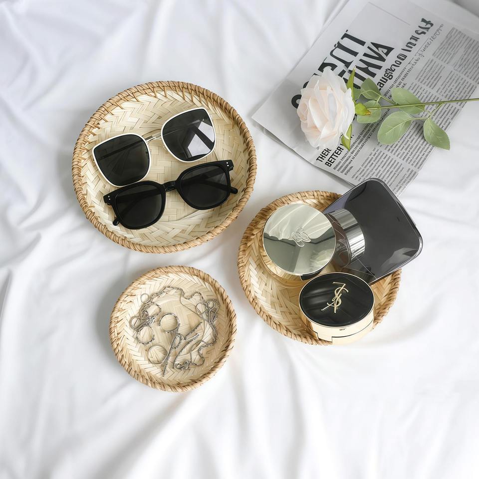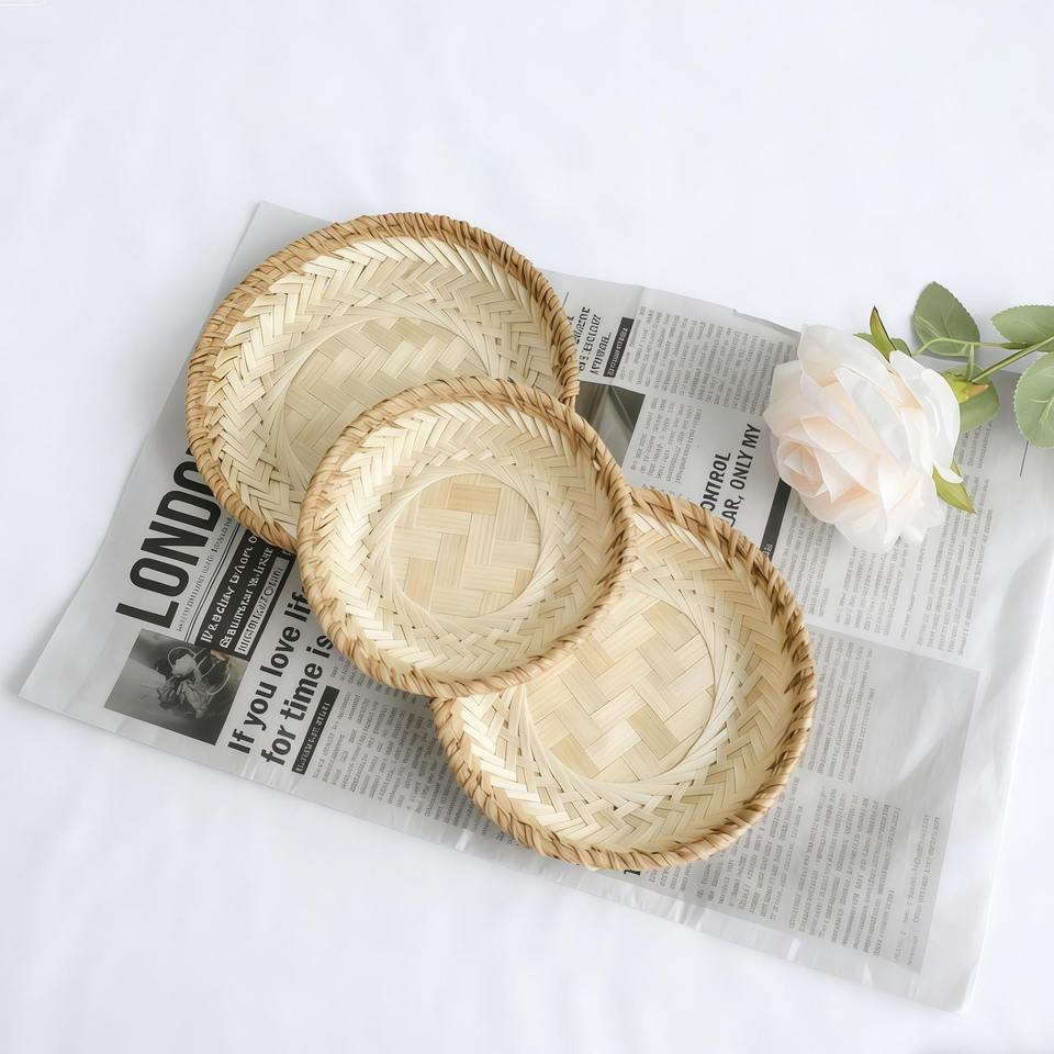 Plateau de service en rotin au style intemporel, idéal pour les comptoirs de cuisine, les cafés et la mise en scène quotidienne de la table, vente en gros depuis l'Inde