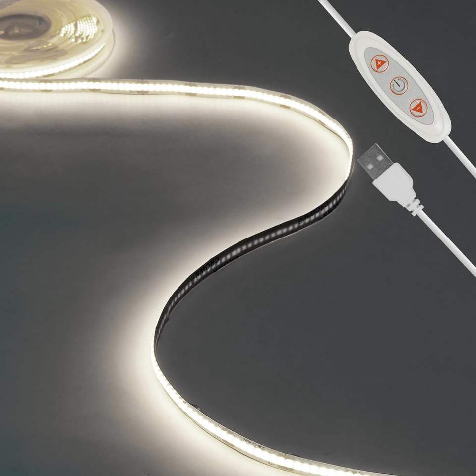Bande lumineuse LED USB Timelux 5V 4m COB Blanc Froid 5000K Haute Luminosité pour Armoires Intérieures Montage en Surface