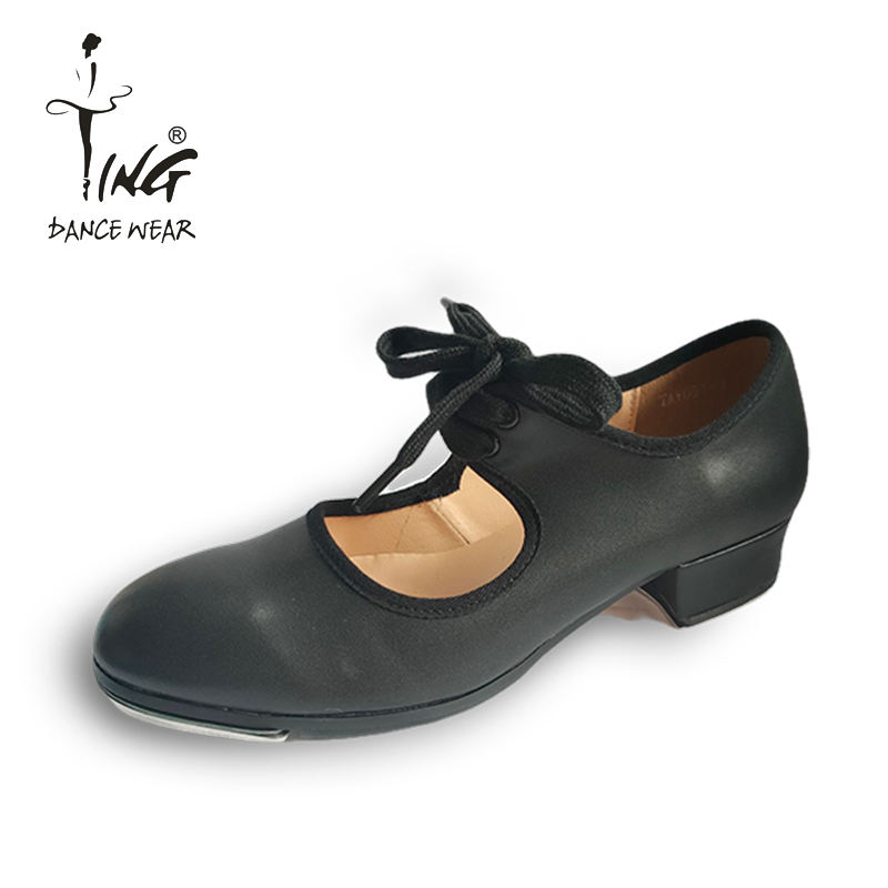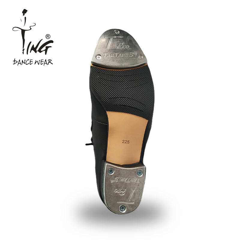 Chaussures de claquettes à talon Ting, chaussures de danse pour la performance, entraînement, chaussures de danse à semelle dure, chaussures de danse en cuir noir pour femmes