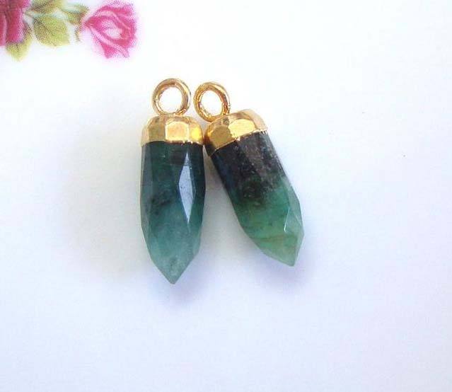 Tinny Dainty Petit Pendentif Pointu En Forme De Crayon Vert Jade Gemmes Pendentif Vente Chaude Argent Plaqué Or Lunette Ensemble Pendentif