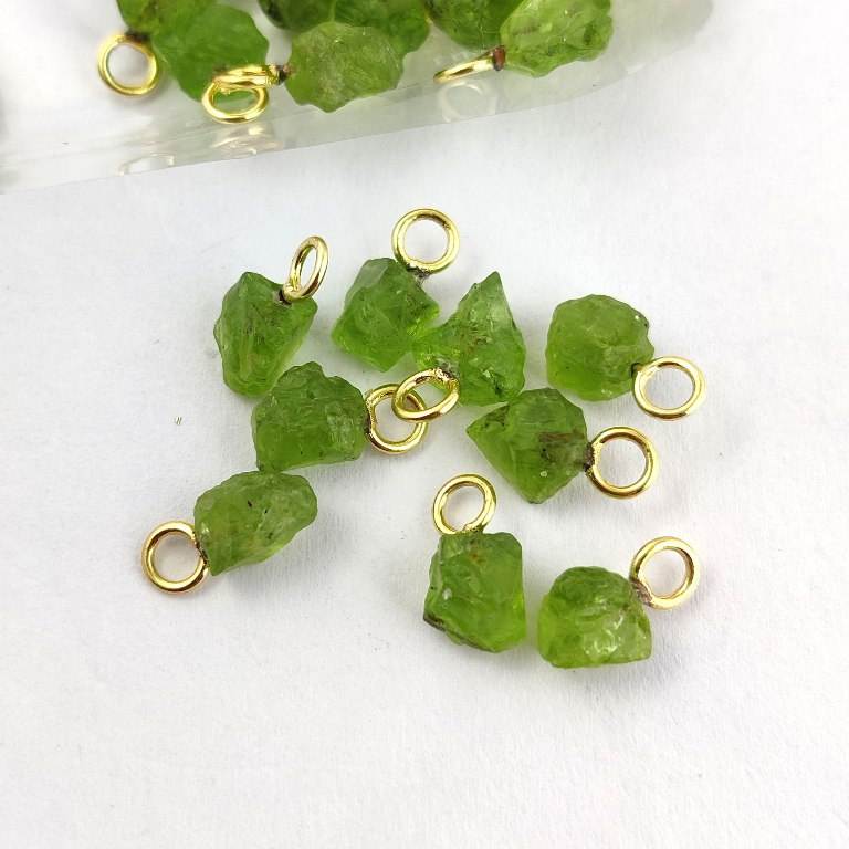 Pendentif à breloque brute en petite pierre de naissance 6-9mm, boucle en Vermeil doré, petites breloques en pierre brute